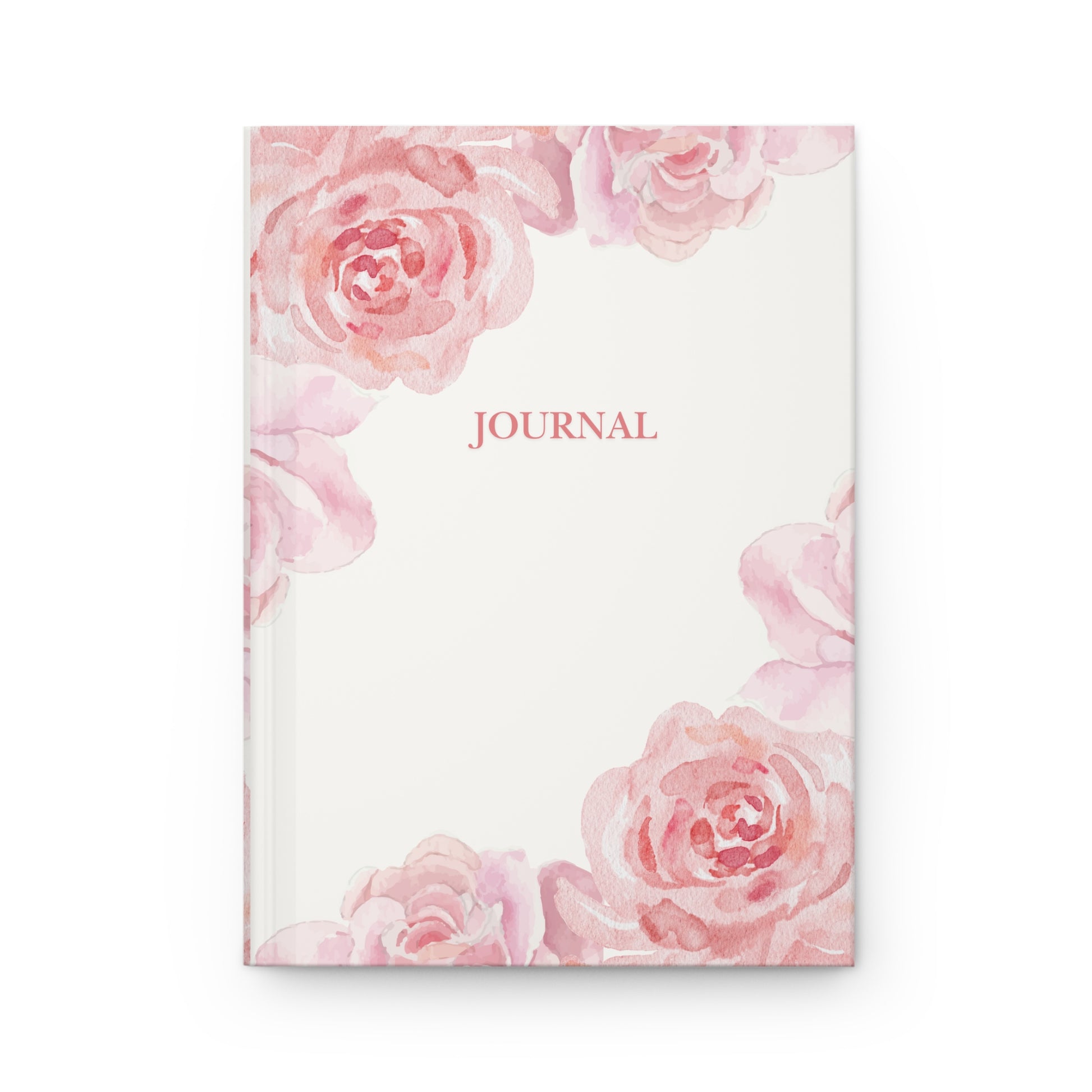 Soft, watercolor roses bloom across a matte hardcover journal, inviting gentle moments of reflection. The subtle blush palette and understated "Journal" title create a calm, elegant space to record thoughts, plan days, or sketch small ideas. The sewn casewrap binding lays flat for comfortable writing, while 150 lined pages and perforations give flexibility to keep or share pages. Durable matte lamination protects the full wraparound print so this journal can live on bedside tables, in tote bags, or on a desk where quiet rituals happen.